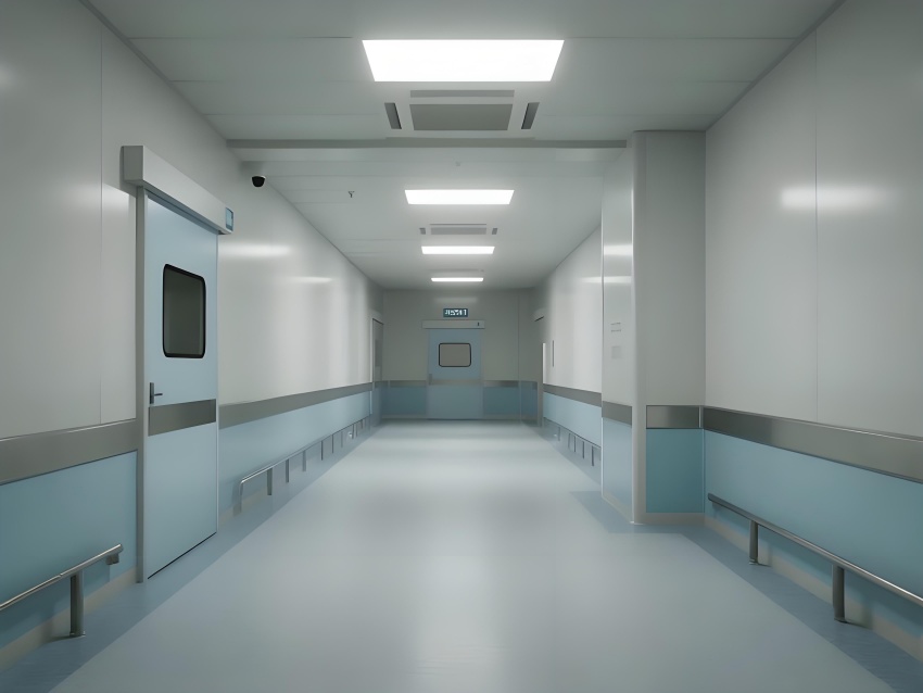 地面采用防靜電環(huán)氧自流平,耐磨無(wú)縫隙且易清潔;墻面為50mm厚抗菌彩鋼板,圓弧角處理避免積塵;頂面配置一體化鋁扣板吊頂,內(nèi)置FFU空氣過(guò)濾單元,與LED平板燈形成均勻照明。