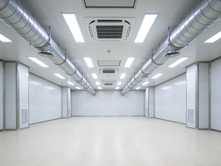 凈化系統(tǒng)安裝是核心環(huán)節(jié)。搭建初效、中效、高效三級過濾的空氣凈化系統(tǒng),高效過濾器安裝在送風(fēng)末端,安裝前需進(jìn)行檢漏測試。合理布置風(fēng)管,采用鍍鋅鋼板制作,內(nèi)壁光滑,轉(zhuǎn)彎處做圓弧過渡,減少積塵。同時安裝溫濕度與壓差控制系統(tǒng),確保潔凈區(qū)與非潔凈區(qū)間壓差≥10Pa,溫濕度控制在45%-60%,防止靜電與微生物滋生。
