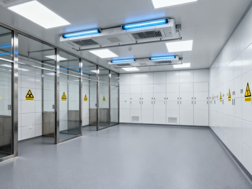 潔凈度執(zhí)行萬級標準(ISO8級),配置生物安全型空氣凈化系統(tǒng),確保每小時20次空氣置換與99.99%微粒過濾效率。