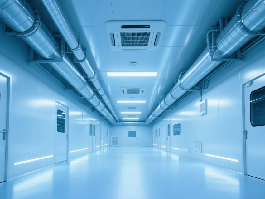三維污染控制:天花板ULPA過濾(99.9995%@0.12μm)+墻面納米涂層+地板層級增壓(0.06"WG梯度)