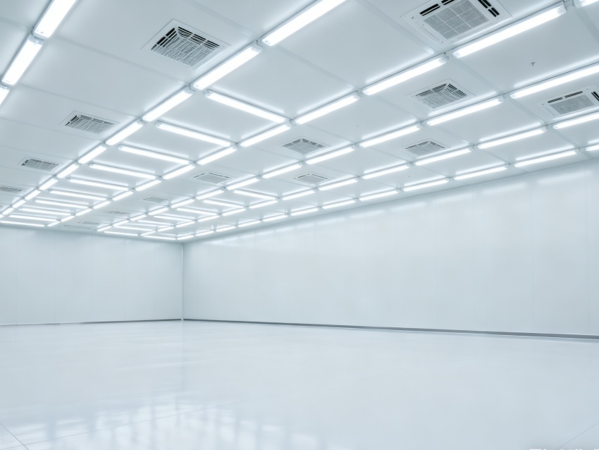 車間潔凈度嚴格遵循萬級標準(ISO8級),每立方米空氣中≥0.5μm的微粒數不超過352000個,通過初、中、高效三級空氣過濾系統實現空氣循環凈化,配合地面環氧樹脂無縫涂層、墻面不銹鋼潔凈板及圓弧角設計,減少灰塵積聚與死角。車間內溫濕度精準控制在23±2℃、45±5%RH,壓力梯度維持正壓狀態,有效阻隔外部污染物侵入,為芯片生產提供穩定、潔凈的環境,保障芯片良率與性能。