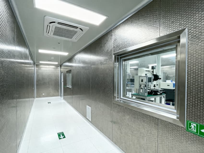 本精密零件加工廠房凈化工程,風格統一契合精密加工需求。外立面采用深灰色氟碳涂層鋼板與雙層中空隔音鋼化玻璃,兼具抗磨損、抗粉塵附著與降噪性能,預留大型精密設備運輸入口與新風系統接口,滿足設備進場與環境調控的雙重需求。?