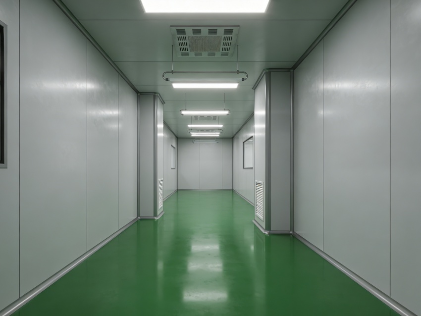 內(nèi)部生產(chǎn)車(chē)間均以綠色抗菌潔凈地坪搭配灰色工業(yè)級(jí)無(wú)縫墻面,形成鮮明且適配行業(yè)的視覺(jué)基調(diào)。綠色地面選用食品級(jí)抗菌環(huán)氧材質(zhì),具備強(qiáng)耐磨、抗酸堿腐蝕及易消殺特性,可耐受發(fā)酵液、清潔劑等殘留清理,同時(shí)助力緩解操作人員視覺(jué)疲勞;灰色墻面采用抗菌涂層無(wú)縫拼接,搭配圓弧墻角設(shè)計(jì),徹底消除清潔死角,減少微生物附著滋生。