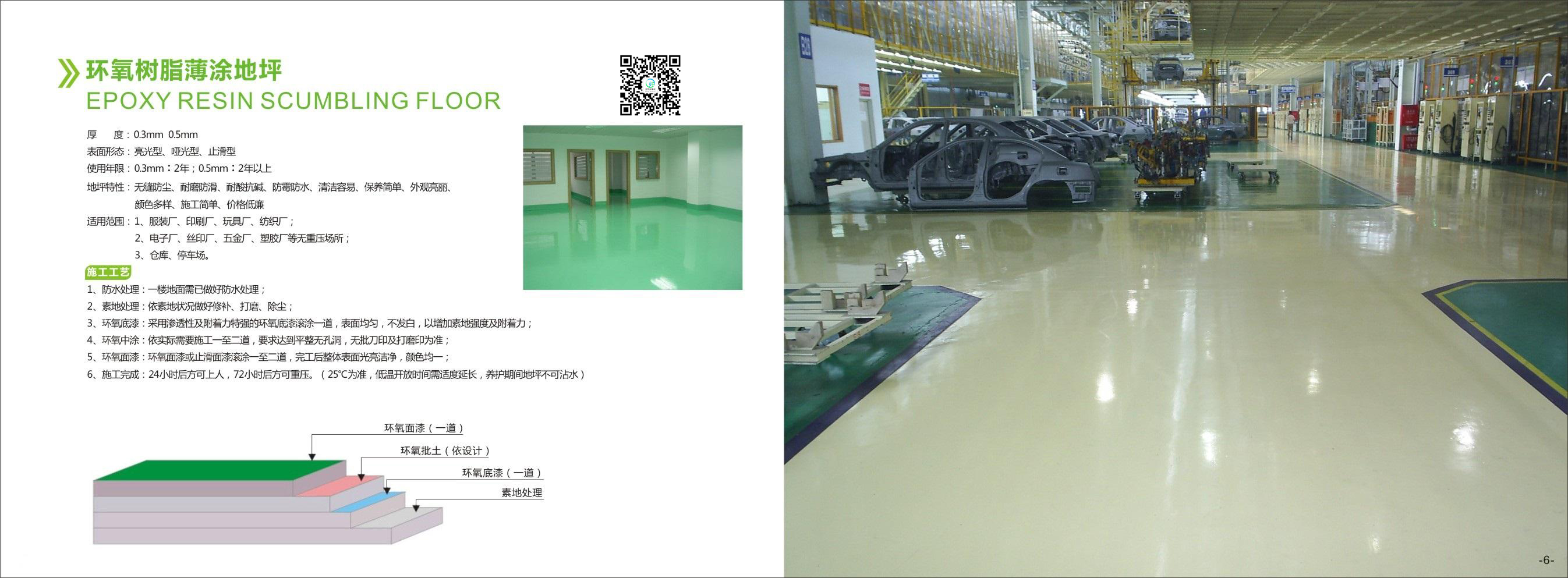 環氧樹脂薄涂地板漆針對一般輕工業作業場所用,適用于一般水泥砂漿地面及洗石地面,具有防塵美觀耐磨等特性。可根據客戶要求及實際生產需要對地坪厚度進行施工。 性能特點: 附著力強,無縫防塵,耐磨,平坦性及遮蓋力佳; 耐微酸,微堿,防毒性佳,安全無毒。 適用場所: 原舊環氧地坪修補; 醫院,藥廠,電子,食品廠; 實驗室,地下停車場或輕放場所等行業。