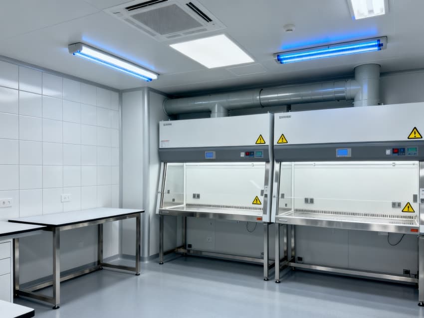 圍護(hù)結(jié)構(gòu)選用304不銹鋼抗菌墻板與無縫PVC地面,轉(zhuǎn)角圓弧處理無衛(wèi)生死角,配套紫外消毒系統(tǒng)與恒溫恒濕控制(22±1℃,50±5%RH),全面滿足微生物研究的無菌環(huán)境要求。