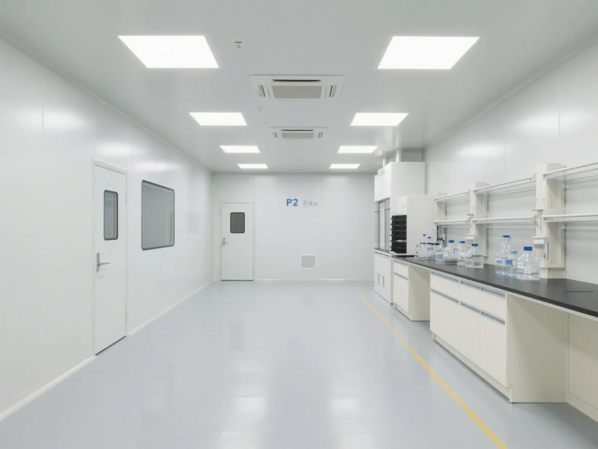 本實驗室嚴格遵循《生物安全實驗室建筑技術規(guī)范》GB50346標準,以"科技純凈"為設計理念,通過象牙白彩鋼板墻體與淺灰環(huán)氧樹脂地坪的極簡組合,打造符合P2防護要求的現(xiàn)代化研發(fā)空間。